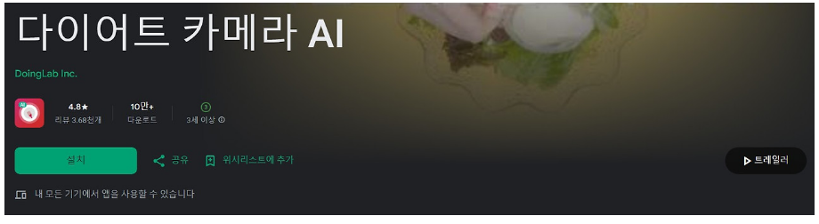 6. 식단 기록 칼로리 계산기 앱: 다이어트 카메라 AI