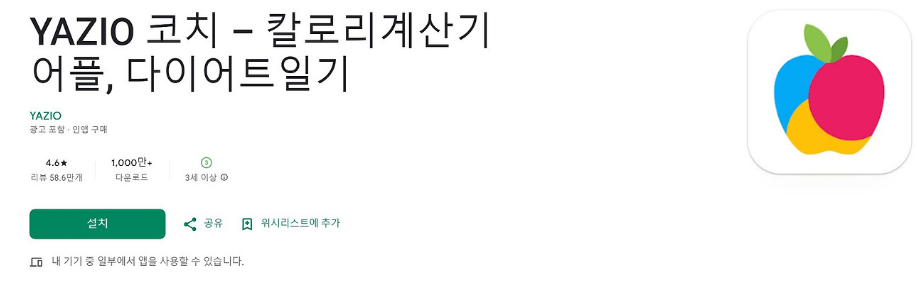4.식단 기록 칼로리 계산기 앱: YAZIO 코치 – 다이어트일기