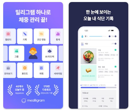 2. 식단 기록 칼로리 계산기 앱: 밀리그램