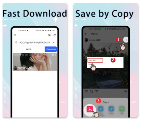 InstSaver는 사진, 영상, 스토리 등 다양한 소셜미디어 콘텐츠를 손쉽게 저장할 수 있는 앱입니다. 두 가지 방식으로 이용할 수 있는데, 공유 버튼을 통해 앱을 직접 실행하거나 링크 복사 후 앱을 열면 자동으로 저장이 시작됩니다