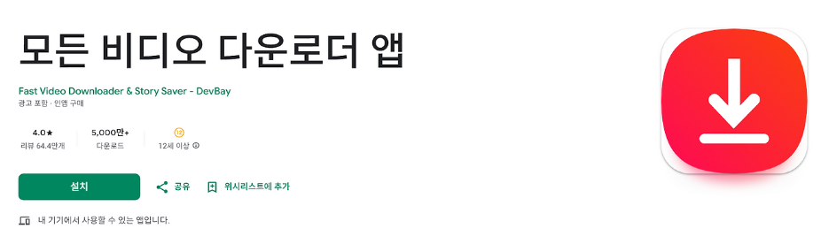4. 인스타 동영상 다운로드: 모든 비디오 다운로더 앱