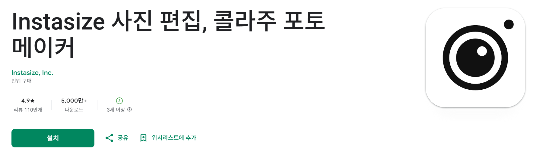 Instasize는 Instasize, Inc.에서 제공하는 앱으로, 평균 평점 4.9와 105만 개 이상의 리뷰, 5,000만 회 이상의 다운로드를 기록했습니다. 다수의 사진 필터, 사전 설정, 색상 편집 도구를 제공하며, 다양한 소셜 플랫폼에 최적화된 콜라주 제작이 가능합니다.