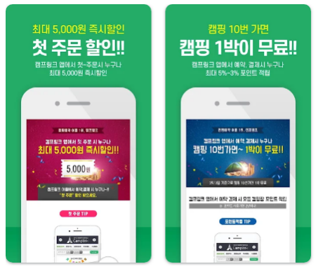 캠핑 장비 대여, 먹거리 주문, 캠핑 체크리스트, 캠핑 노하우 공유 등 캠핑 준비와 경험을 지원하는 부가 기능이 있는 앱이 편리합니다.