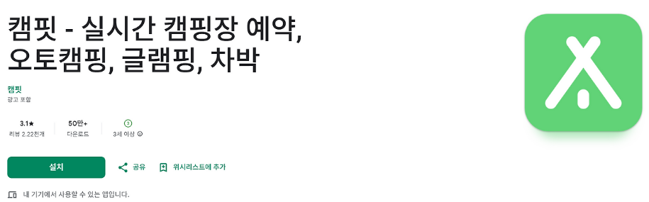 6. 인기 캠핑장 추천 앱: 캠퍼블(CAMPABLE) - 캠핑장 빈자리 알림