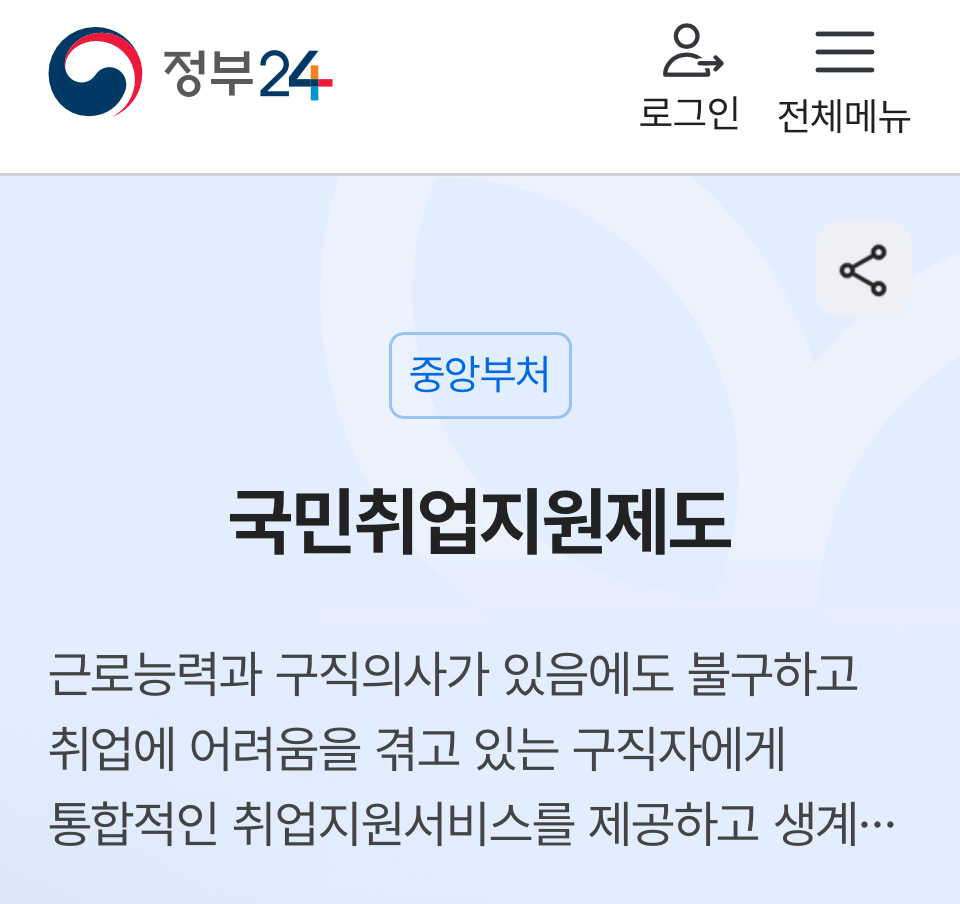 • 지원 서비스: 취업지원서비스 + 구직촉진수당 제공