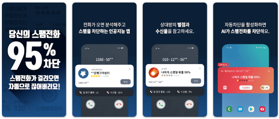 AI 기반 스팸 차단 기능과 사용자 평가 시스템을 통해 최신 스팸 번호를 자동 식별하고 공유하며, 안전하고 쾌적한 통화 환경을 제공합니다. 또한 다양한 부가 기능으로 사용 편의성을 높였습니다.