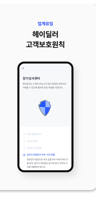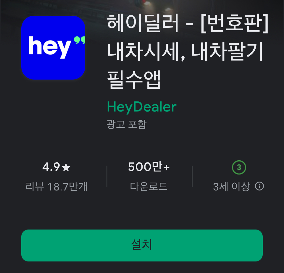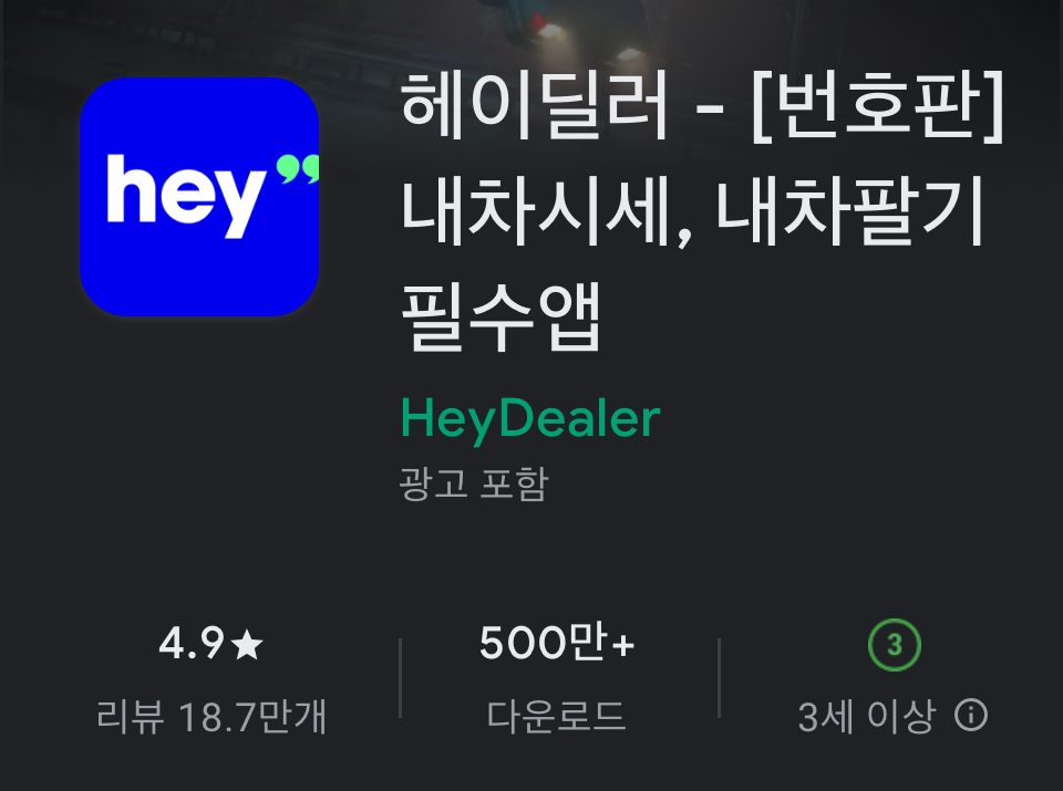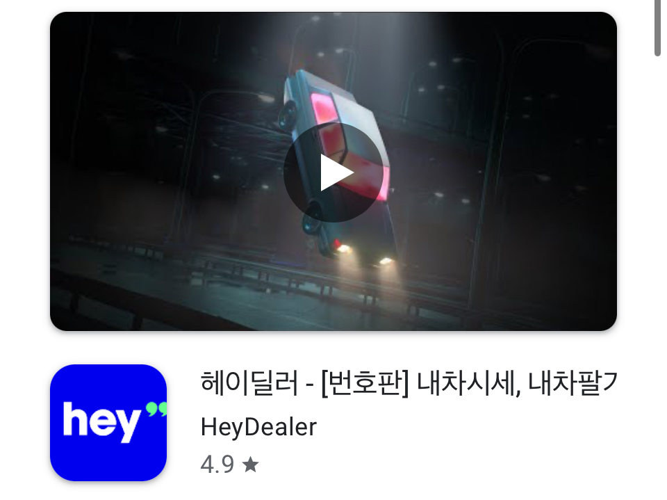• 안드로이드 사용자는 구글 플레이스토어에서 ‘헤이딜러’를 검색해 설치할 수 있습니다.