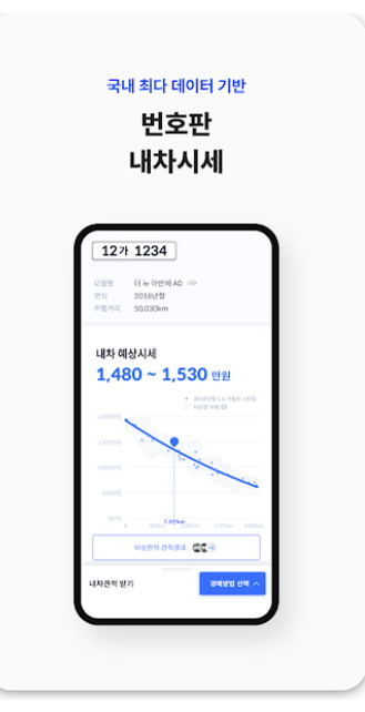 • 앱 실행 후 차량 번호판 입력으로 내 차 시세를 확인합니다.