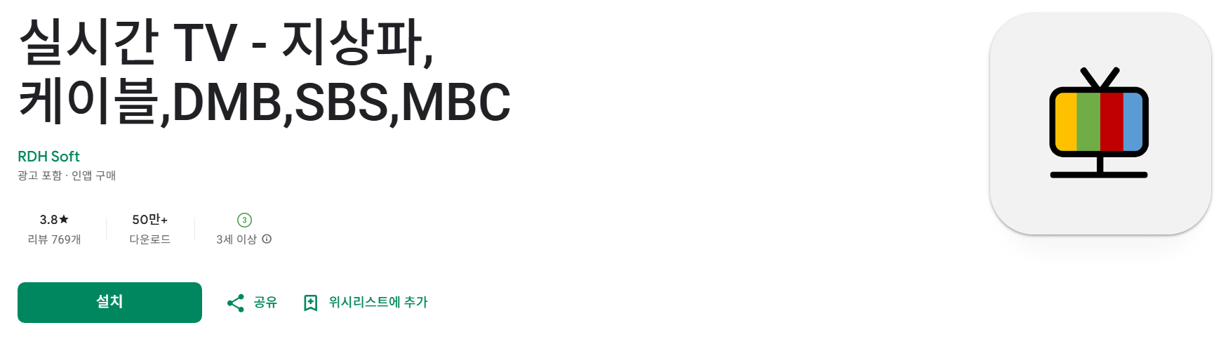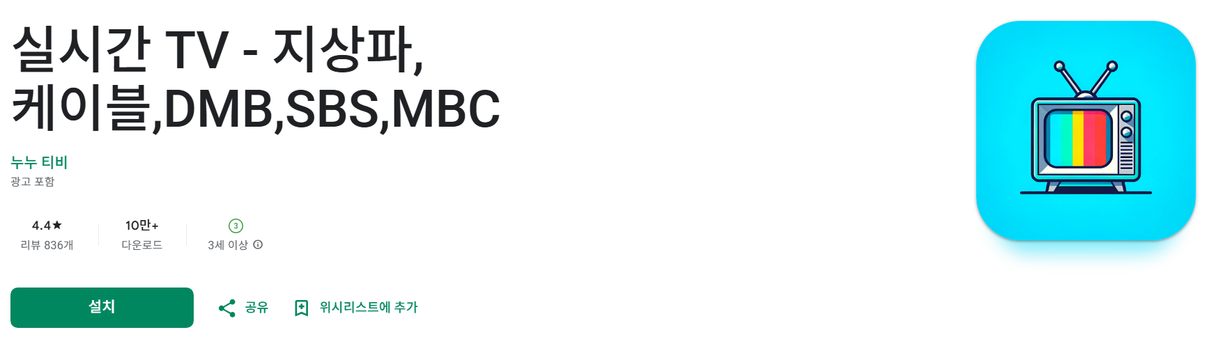 1. 실시간 TV보기 어플 : 지상파, 케이블, DMB, SBS, MBC