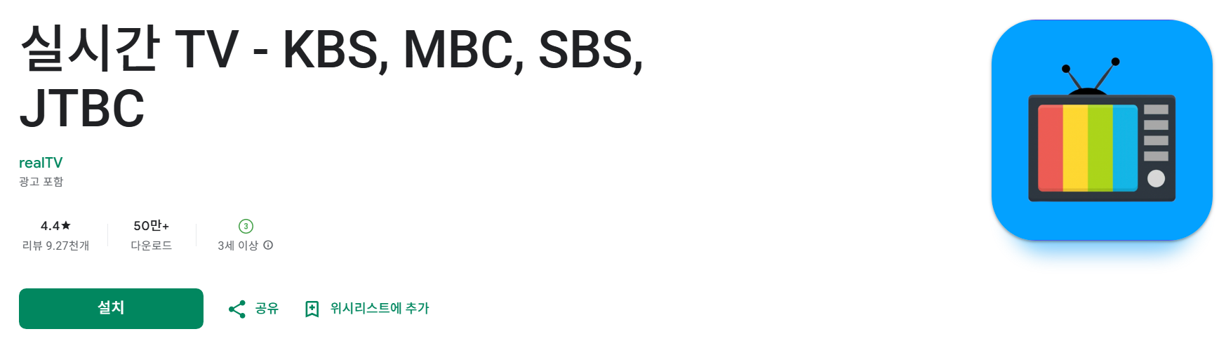2. 실시간 TV보기 앱 : 티비 시청하기 - KBS, MBC, SBS, JTBC